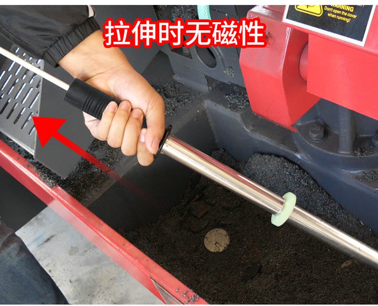 是采用不銹鋼管和高B值稀土合金釹鐵硼,并采用特殊的制作方法制作而成。當(dāng)含鐵的物質(zhì)通過時(shí),受到磁力棒的吸引,將含鐵的物質(zhì)牢固的吸附在磁棒的管壁上,以保證設(shè)備的完好和產(chǎn)品的安全。